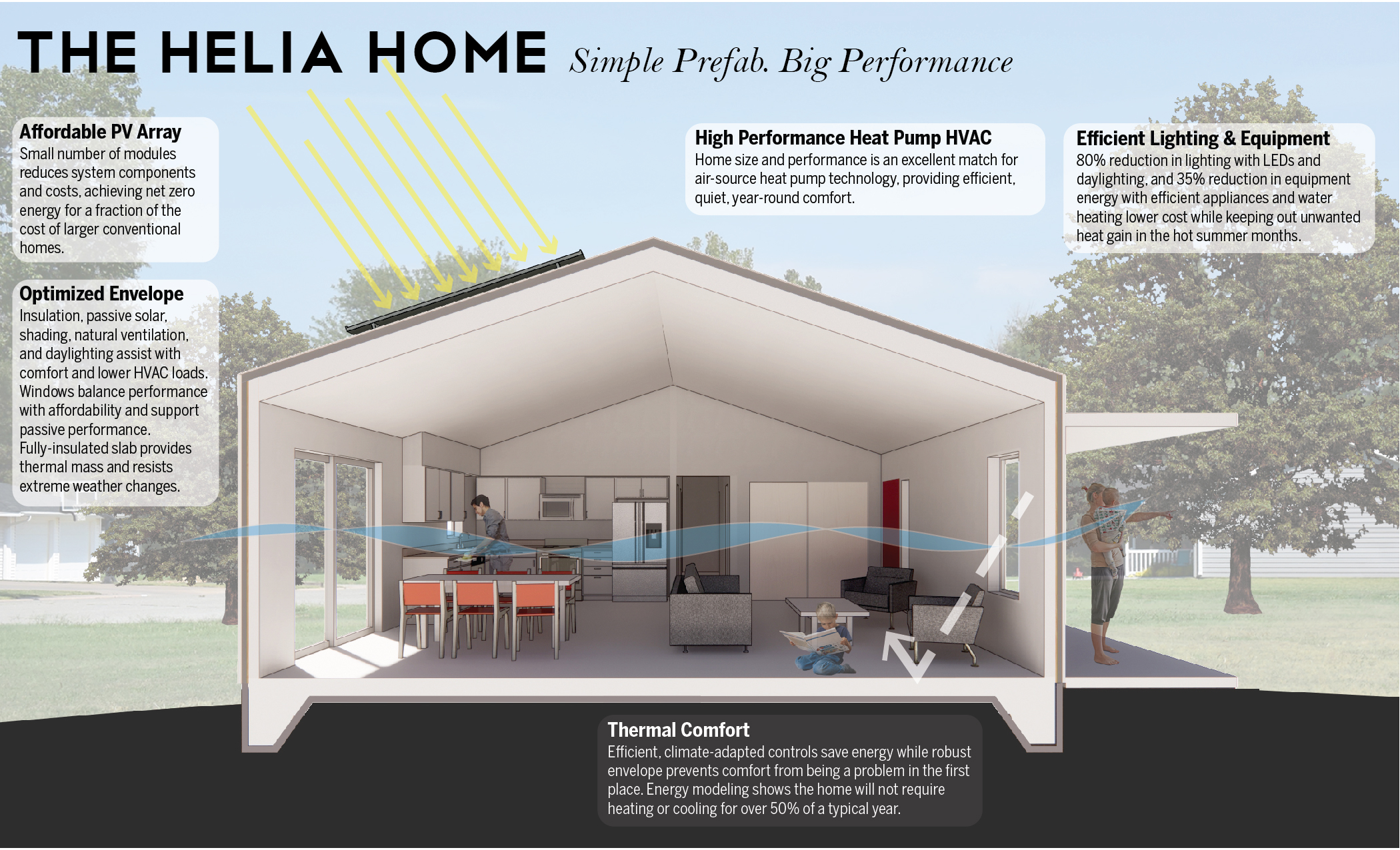 Helia’s approach to prefab emphasizes simplicity, cost efficiency, and optimized energy performance, prioritizing technologies that make net zero performance affordable and functional for everyday homes.