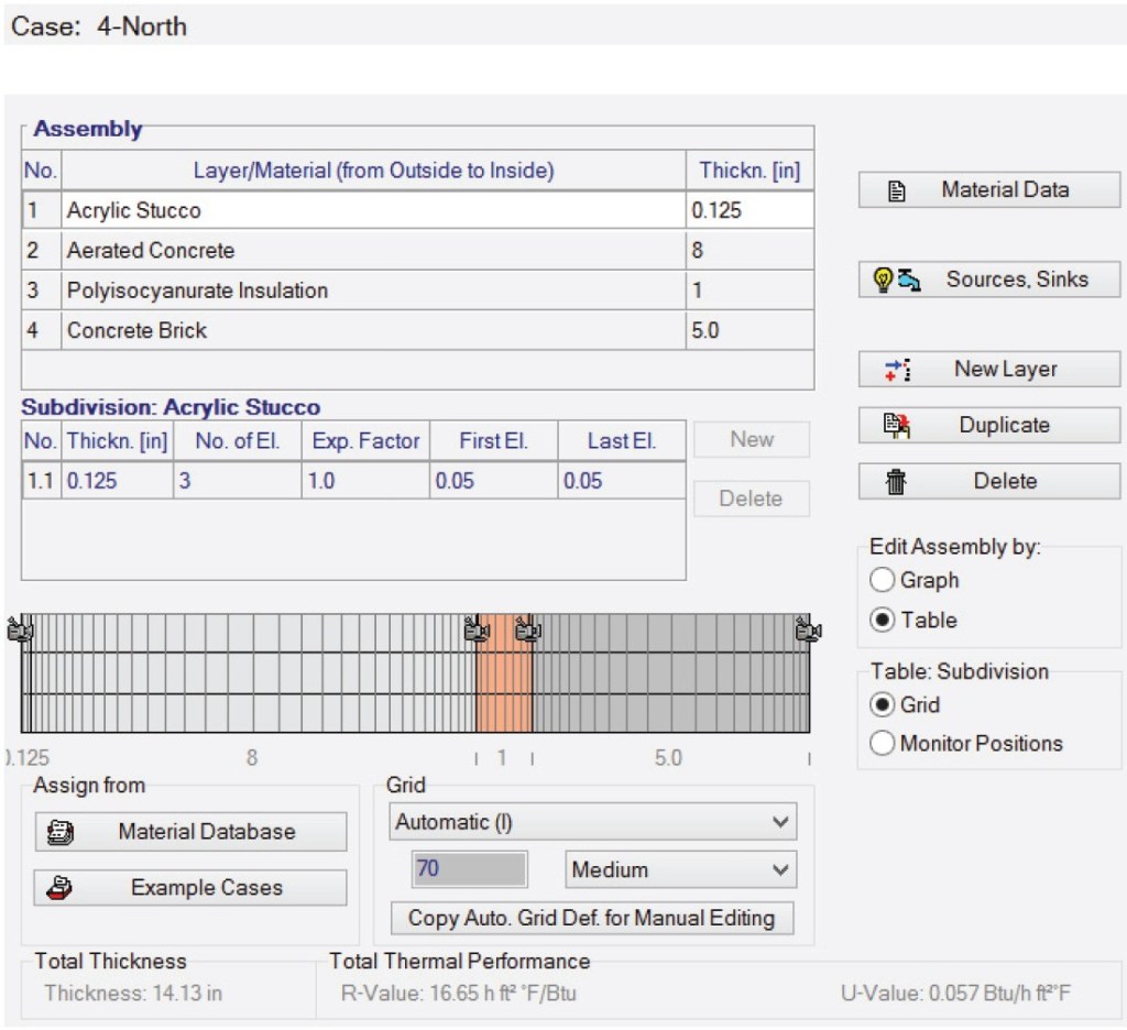 The study used WUFI, a program that provides a dynamic analysis of building assemblies to show their interaction with climate-driven temperature and moisture. Six cases were analyzed with different variations of block, insulation, and structural concrete, studying the assemblies on different facade orientations and with finishes of varying material and permeability. The study’s conclusion summarized the performance of each case and recommended the most appropriate and cost-effective use of AAC for the client’s projects.